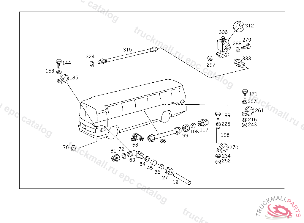 LINE FROM AIR RESERVOIR II TO 2-SPEED REAR AXLE CONNECTION ELBOW FITTING, NOT FOR USE WITH SWING-OUT DOOR USED WITH HYDRAULIC BRAKE UP TO CHASSIS 209475 EXCEPT FOR 209273,209446,209461,209465,209471,209474.