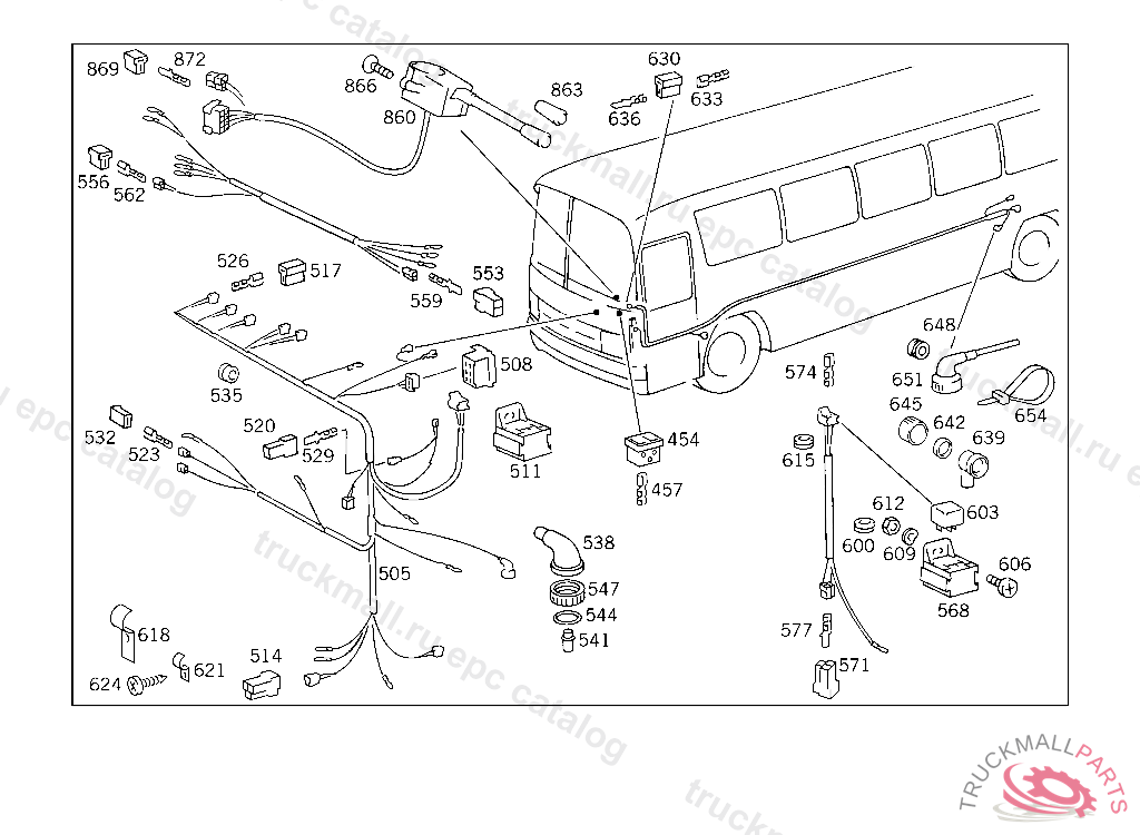 PIN BUSHING HOUSING. PLUG HOUSING FROM CHASSIS/CAB CONNECTION POINT TO TACHOGRAPH