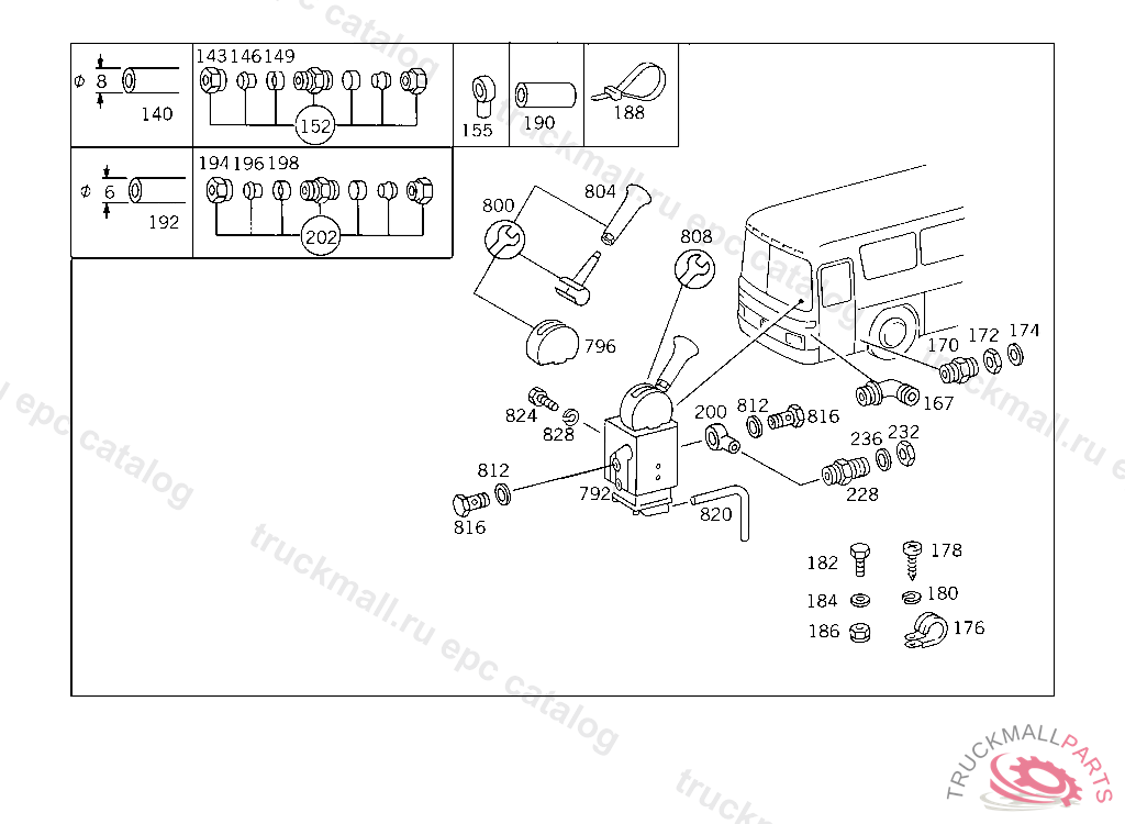 REPAIR KITTO 001 430 58 81/59 81,WABCO, WITH HAND BRAKE VALVE ON ENGINE TUNNEL, FROM IDENT NO. SEE MF 26032