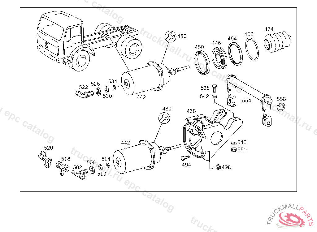 BRAKE CYLINDER , EXHAUST STOCK OF OLD PARTS NUMBER FIRST UP TO CHASSIS 4 847617, Replaced By: A0014317214