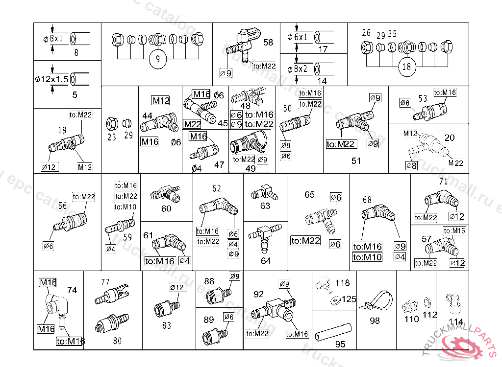 CONNECTION PIECE COMPRESSED-AIR-LINE PLUG-CONNECTION TO M16, 6MM, VOSS 232, Replaced By: A0049976989