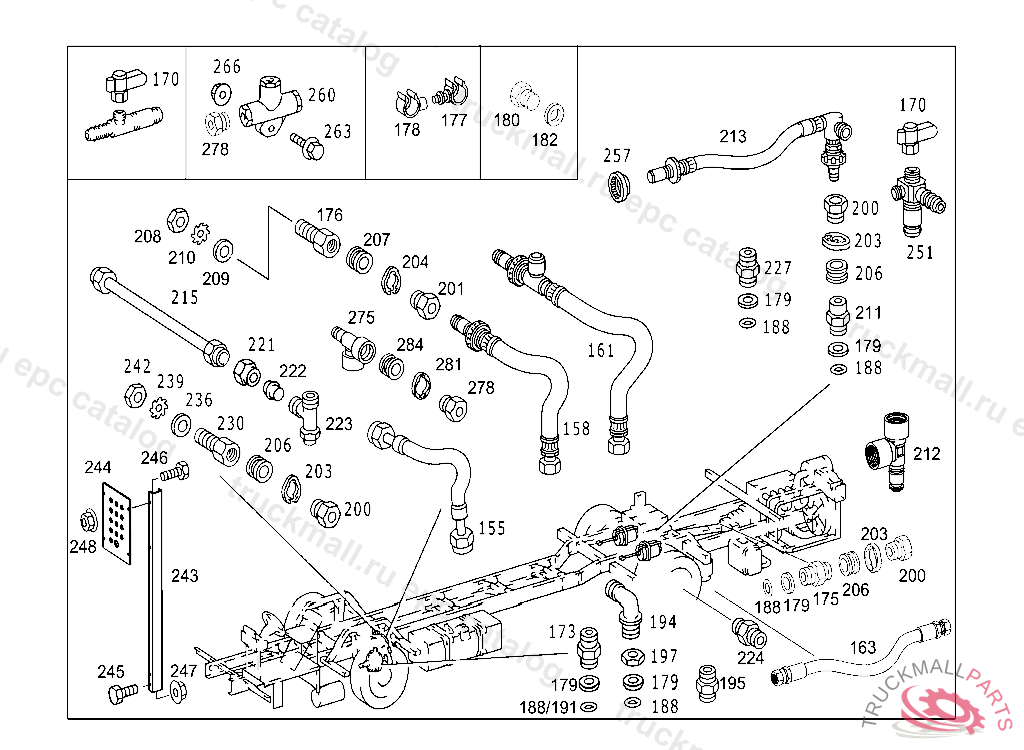 LINE FROM BRAKE HOSE TO LEFT DIAPHRAGM CYLINDER