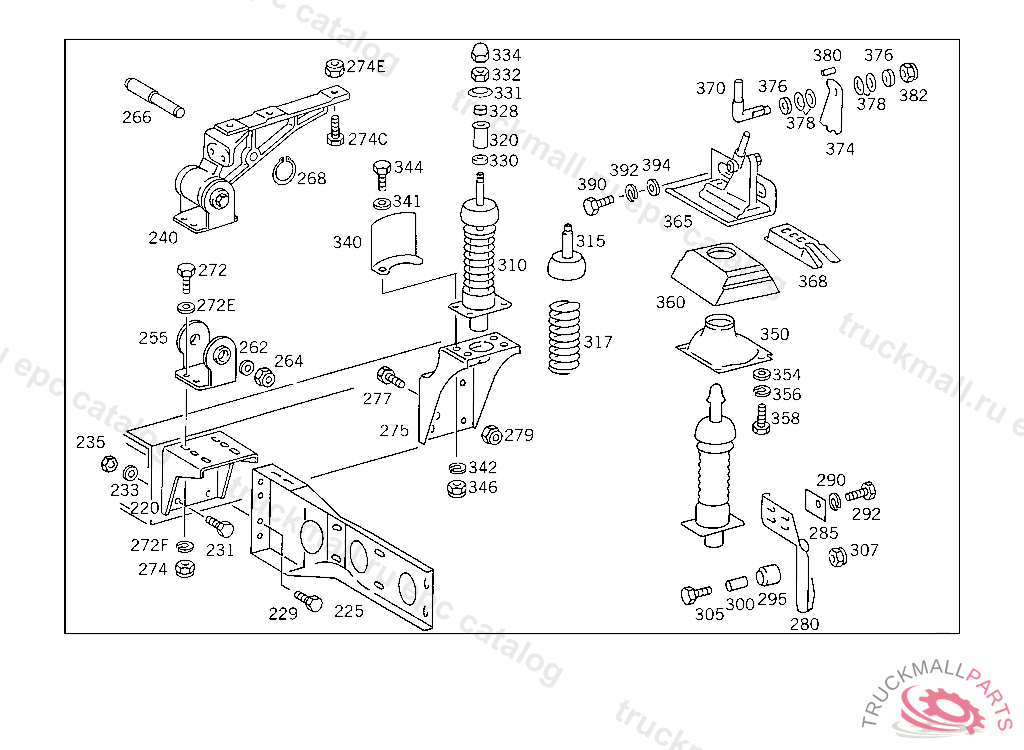 GUIDE CAB SUSPENSION,REAR LEFT, 385.068,069 ON VEHICLES WITH DB CAB ONLY 385.019 FOR USE WITH SHORT MERCEDES-BENZ CAB5 204965