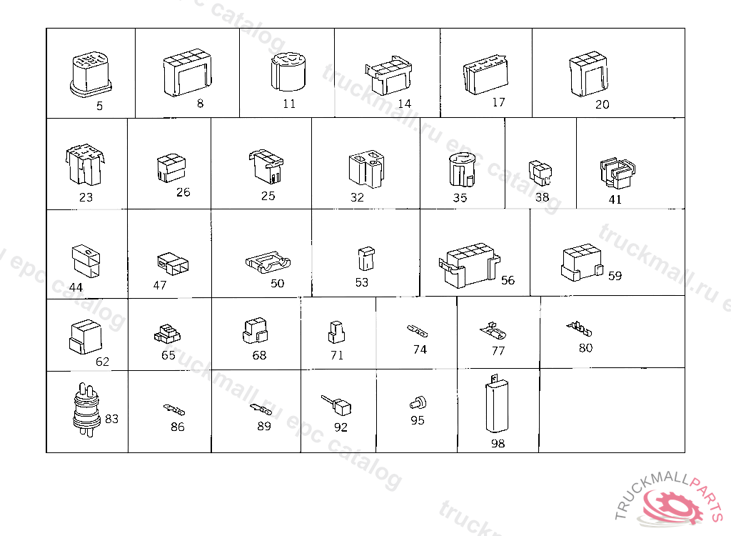 PIN BUSHING HOUSING. PLUG HOUSING FROM CHASSIS/CAB CONNECTION POINT TO TACHOGRAPH