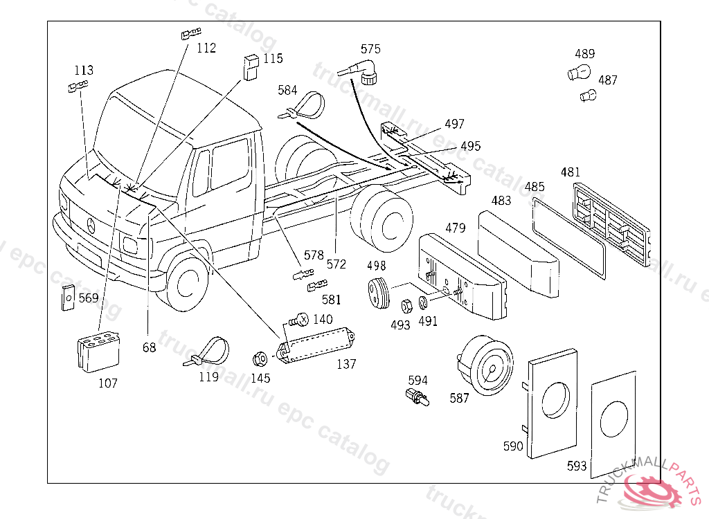 CABLE HARNESS FROM REAR CABLE CONNECTOR TO TAIL LAMP AND TO RIGHT SIDE MARKER LAMP,SB055050