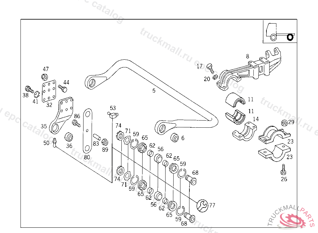 SCREW SPACER TUBE BETWEEN STABILIZER SHACKLES 12X1.5X75,D 228765