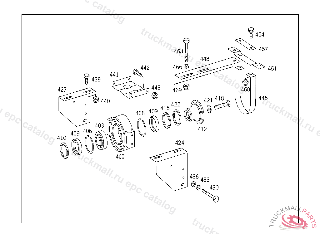 PROTECTIVE CAP FOLLOWER FLANGE, INTERMEDIATE BEARING, BALL BEARING IN RUBBER SEAT