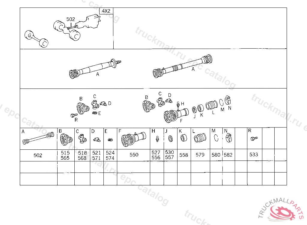 PROPELLER SHAFT FROM TRANSMISSION TO REAR AXLE 730 MM,C 063804