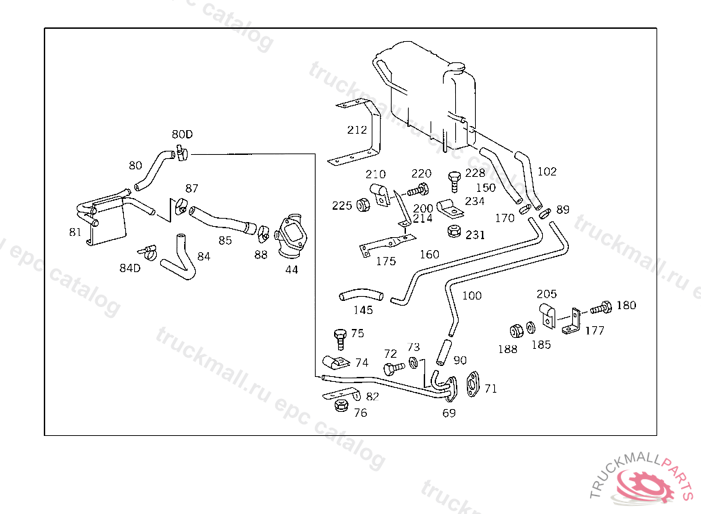 BREATHER PIPE VENTILATION, FROM RADIATOR TO EXPANSION TANK, 415 5 014668 416 5 000515 417 4 972023 FOR USE WITH SHORT MERCEDES-BENZ CAB