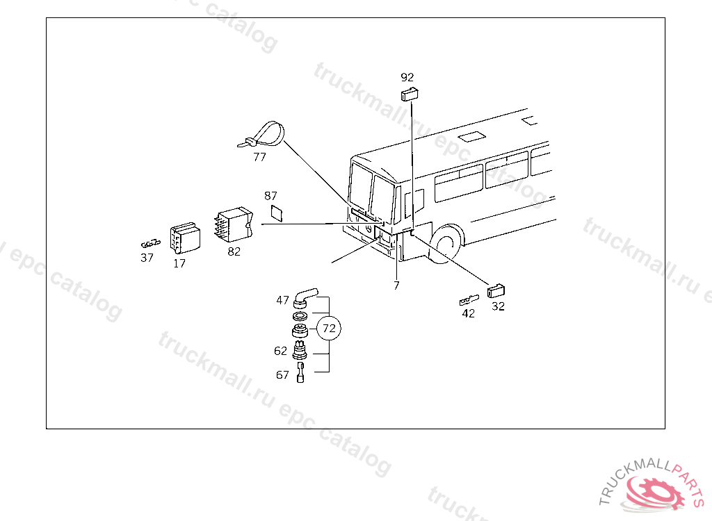 PIN BUSHING HOUSING. PLUG HOUSING FROM CHASSIS/CAB CONNECTION POINT TO TACHOGRAPH