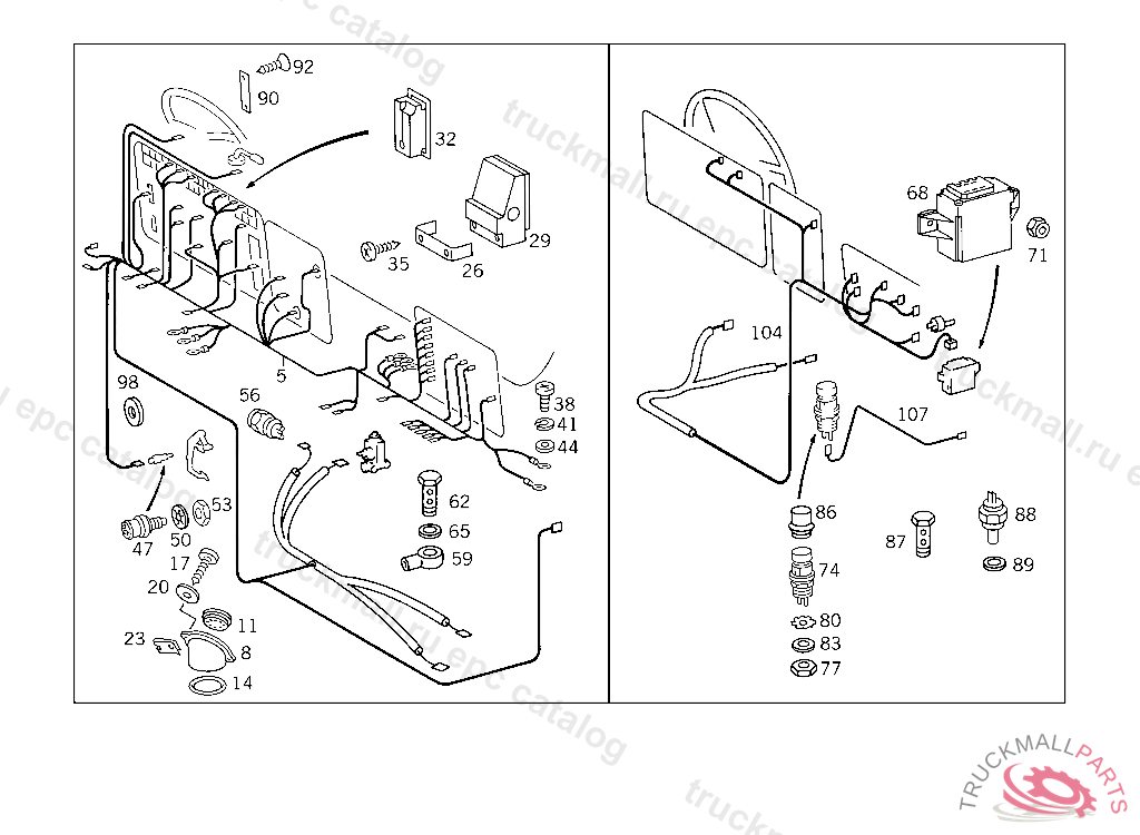 CABLE HARNESS CAB MAIN CABLE HARNESS, THIS CABLE HARNESS IS A COMPONENT OF FRAME MOUNTED CABLE HARNESS ASSEMBLY AND CAN BE MADE AVAILABLE AS A SPARE ATTENTION: WHEN PLACING ORDERS, PLEASE QUOTE VEHICLE IDENT NO. ONLY IF FRAME MOUNTED CABLE HARNESS IS REQUIRED AS AN ASSEMBLY COMPONENTS SEE CHASSIS PARTS KIT ACTROS DESIGN GROUP 54