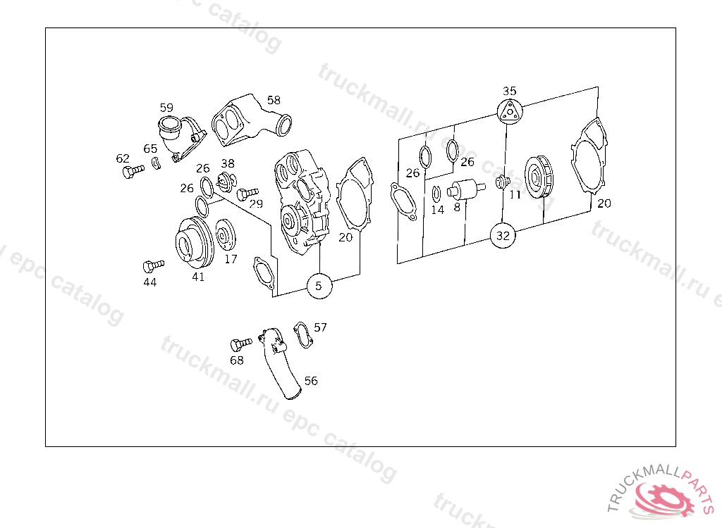WATER PUMP WITH GASKETS, 401-403,421-423,441-443744216 424,444015253 427,447052134 PART IS ONLY OR ALSO SUPPLIED AS RECONDITIONED PART
