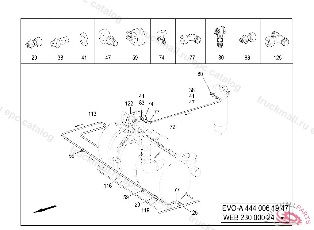CLAMP DELIVERY AND SUCTION LINES TO ENGINE, FRONT