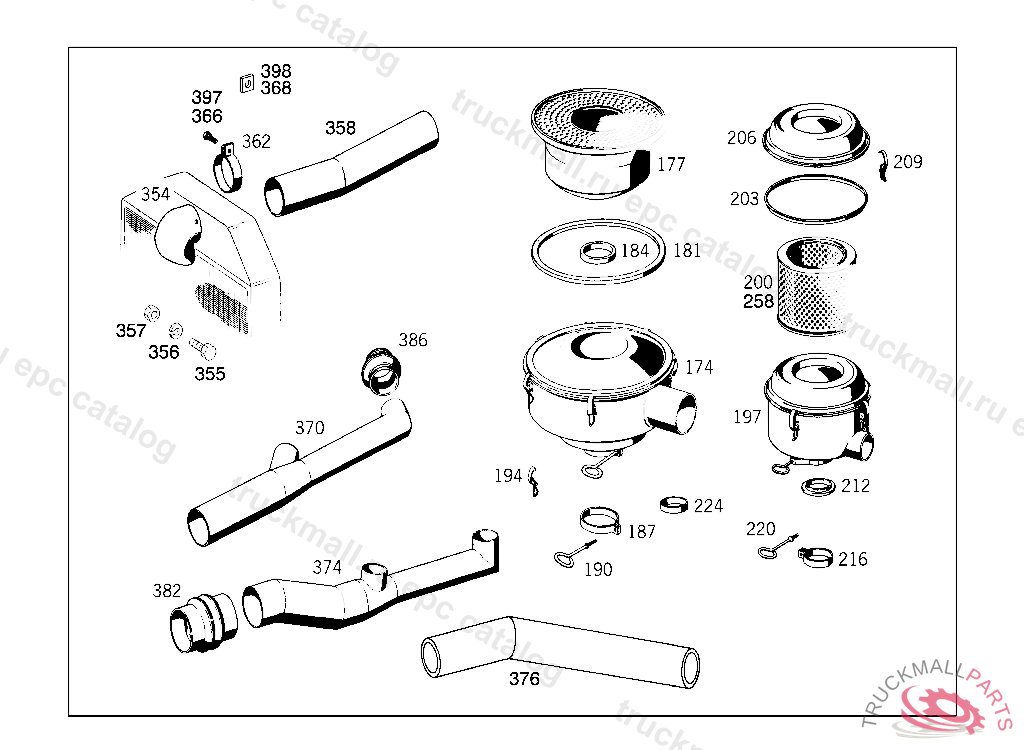 INTAKE PIPE , WITH LA 329 FROM CHASSIS 000307-000404,WITH L 332 FROM CHASSIS 001143-001699YWITH LA 332 FROM CHASSIS 000175-000299,WITH L 334FROM CHASSIS 000506-001470, Replaced By: A3260942308, +002A0019972790, +001N900271100009