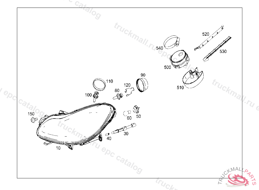 HEADLAMP RIGHT, LEFT-HAND TRAFFIC