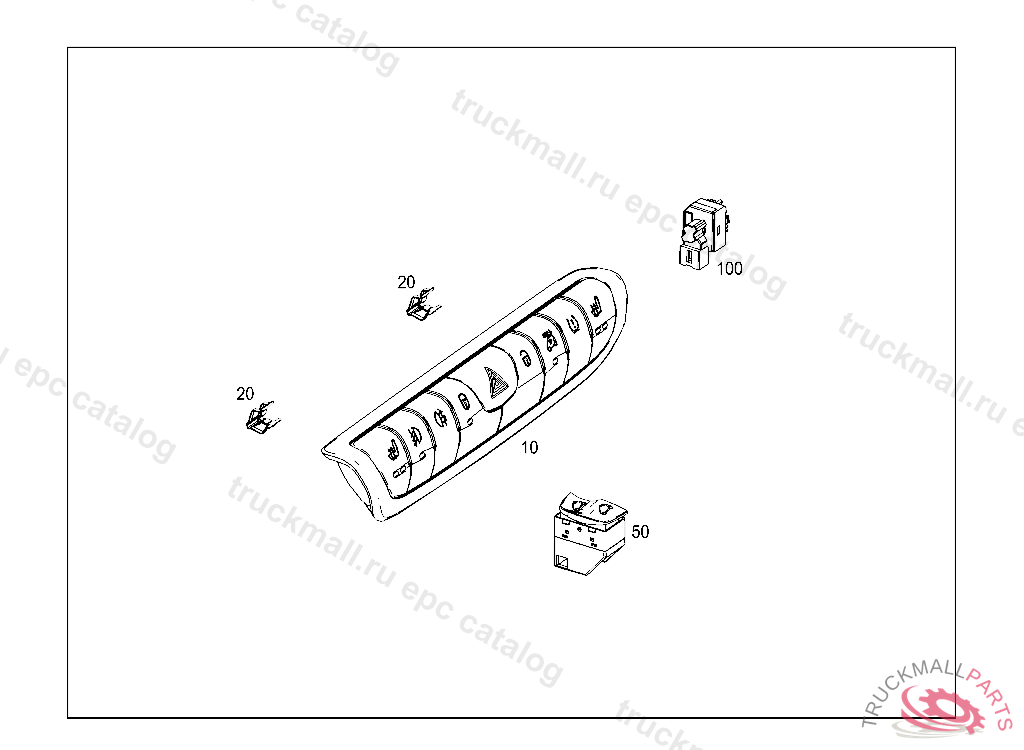SWITCH UPPER CONTROL PANEL, FIRST EXHAUST STOCK OF OLD PARTS UP TO IDENT NO. 20100115, Replaced By: A4518207510