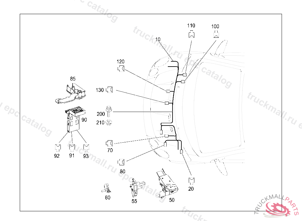 WIRING HARNESS ENGINE CABLE HARNESS,BODY MOUNTED, FIRST EXHAUST STOCK OF OLD PARTS UP TO IDENT NO. B 12594320060403, Replaced By: A4545400507