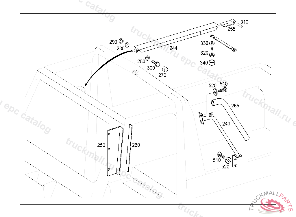STAY ROLL-OVER BAR SUPPORT ON DRAUGHT-STOP, CENTER