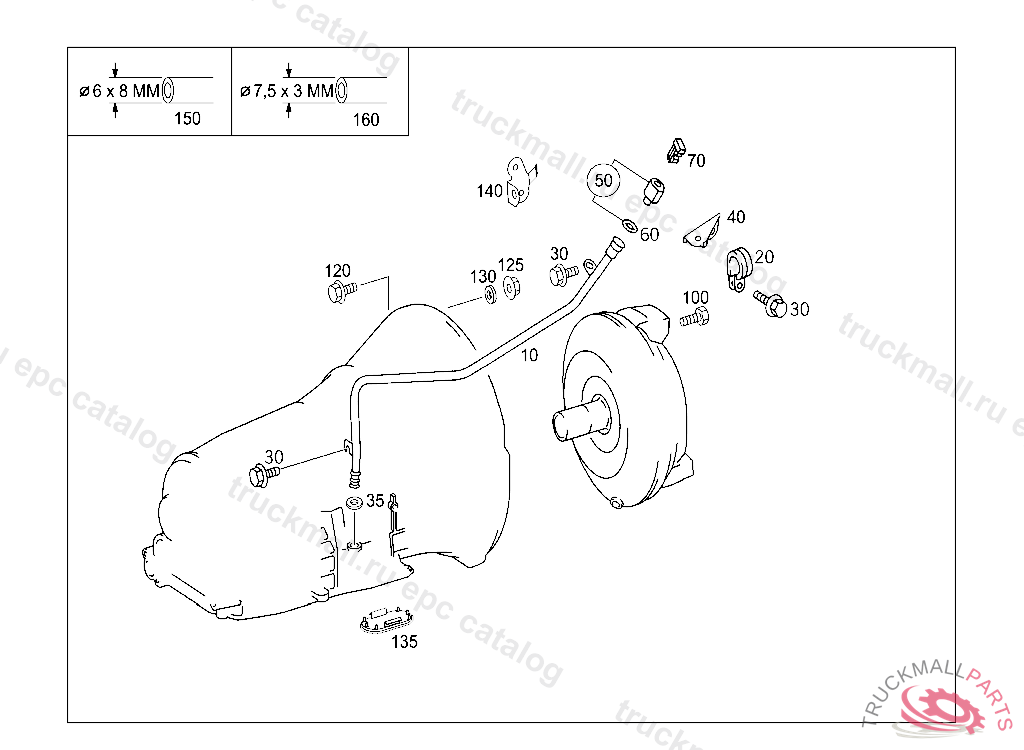 27 MERCEDES-BENZ AUTOMATIC TRANSMISSION - 125 ATTACHED PARTS FOR TRANSMISSION, OIL FILLER PIPE