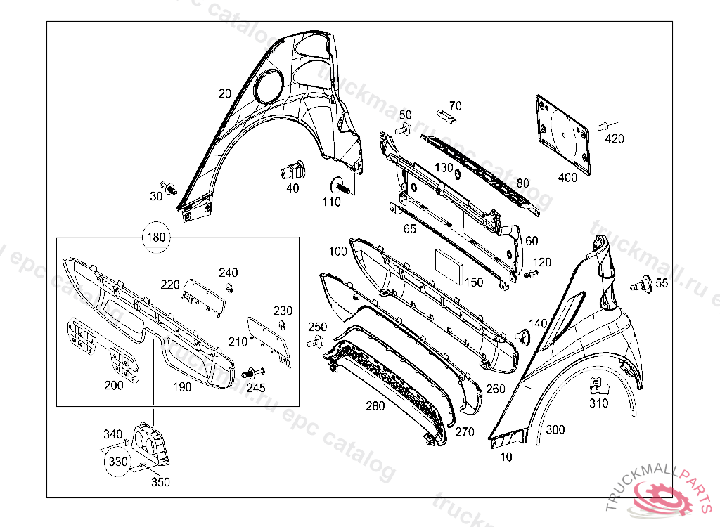 PANELLING LEFT REAR FENDER WIDENING, FIRST EXHAUST STOCK OF OLD PARTS UP TO IDENT NO. K 05319920070816 VEHICLE ACCESS. C63L013 QFT451L0030 PRIME-COATED, Replaced By: A4517930310