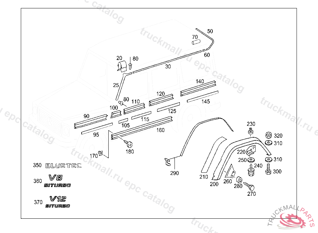 LEDGE ON PROTECTIVE STRIP FOR LEFT FRONT FENDER 991 MM, G55 AMG