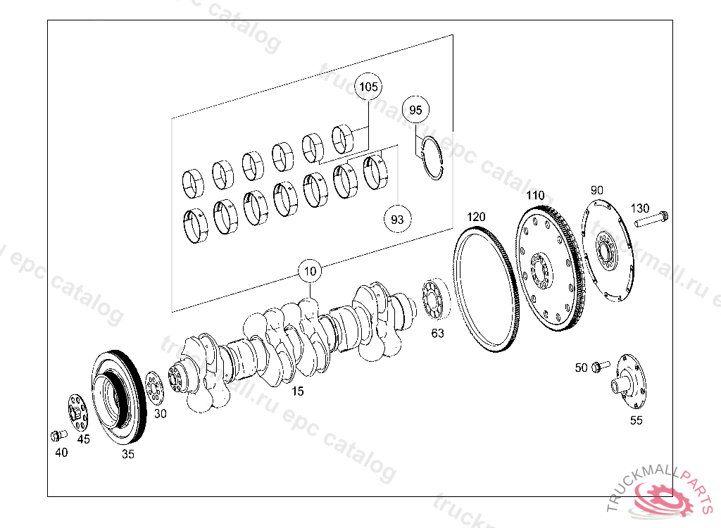 CRANKSHAFT WITH CRANKSHAFT BEARING SHELLS AND CONNECTING ROD BEARING SHELLS