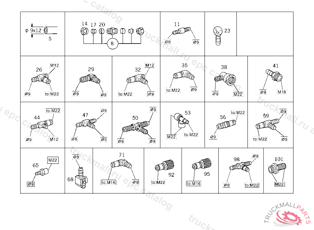 CONNECTOR HOSE WIDTH, 9 MM,TO M 22