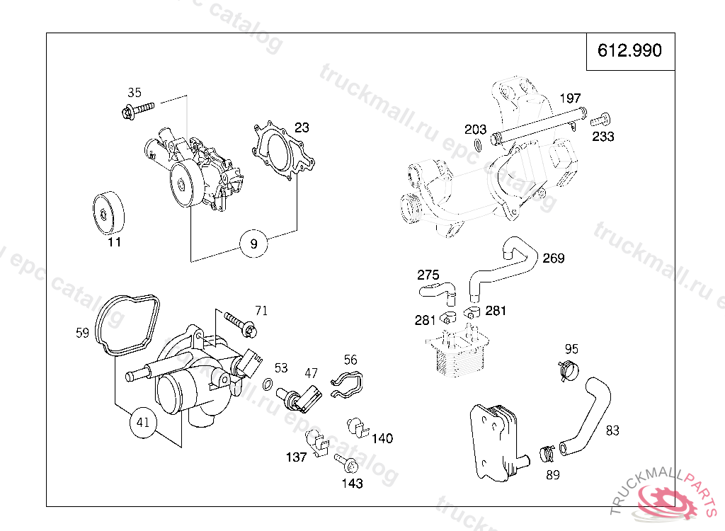 OM 612 DE 30 LA MOTOR IDENT-NR. 6129XX 5 - 612.990 - 20 ENGINE COOLING SYSTEM