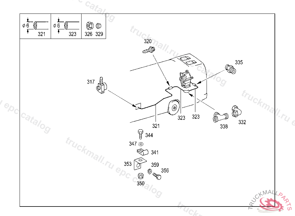 T-FITTING CONTROL UNLOCKING MECHANISM HIGHPRESSURE HOSE TO OIL DELIVERY LINE, 415 5 014669 416 5 000516 417 4 9720245 144227, Replaced By: N000000006204