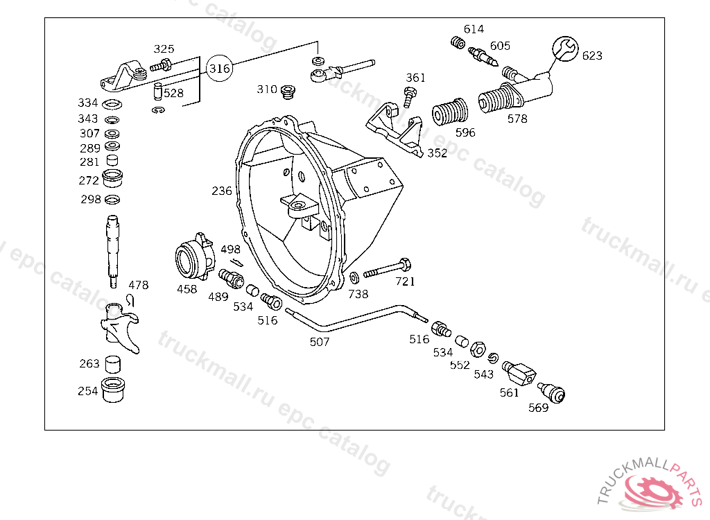 BELL HOUSING , FIRST EXHAUST STOCK OF OLD PARTS UP TO IDENT NO. 5 328362, Replaced By: A6202511601