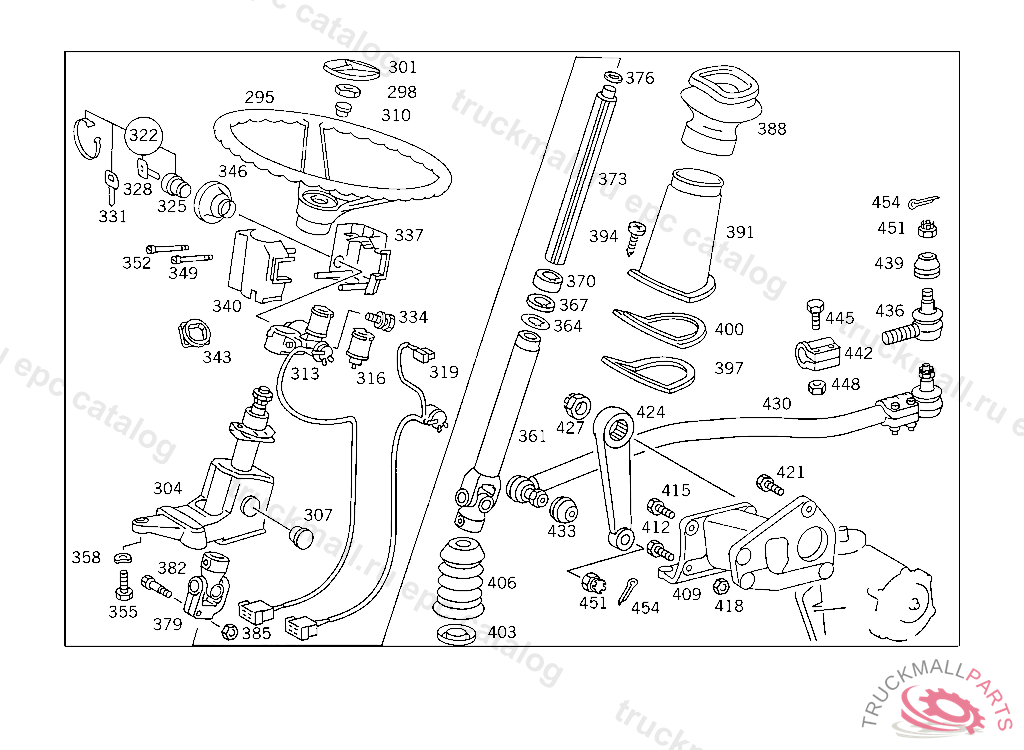 STEERING SHAFTLEMFOERDER, USED WITH SHORT MERCEDES-BENZ CAB