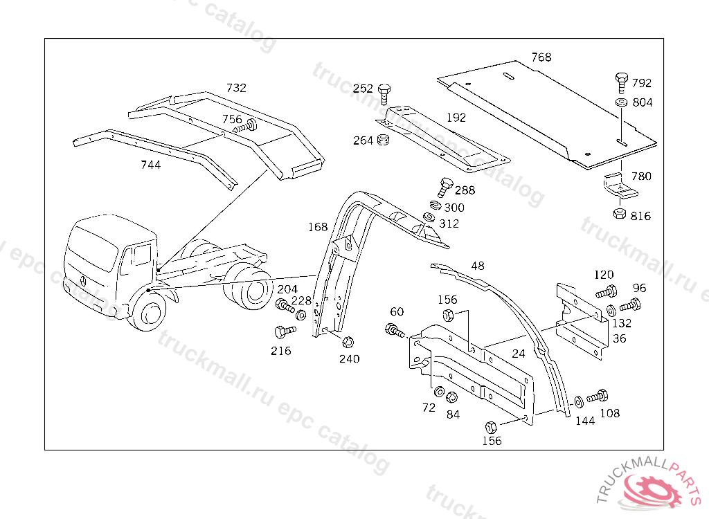 COVER ENGINE COVERING, FOR USE WITH SHORT MERCEDES-BENZ CAB
