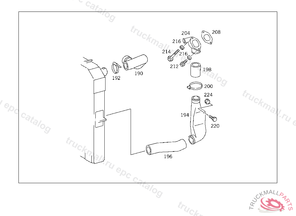 HOSE FROM RADIATOR TO THERMOSTAT, 196 10/50 5 160092, 20/60 5 017521 191 10/50 5 160092, 205 107551, 604 962984 196 10/50 5 160092, 20/60 5 017521 191 10/50 5 160092, 205 107551, 604 962984