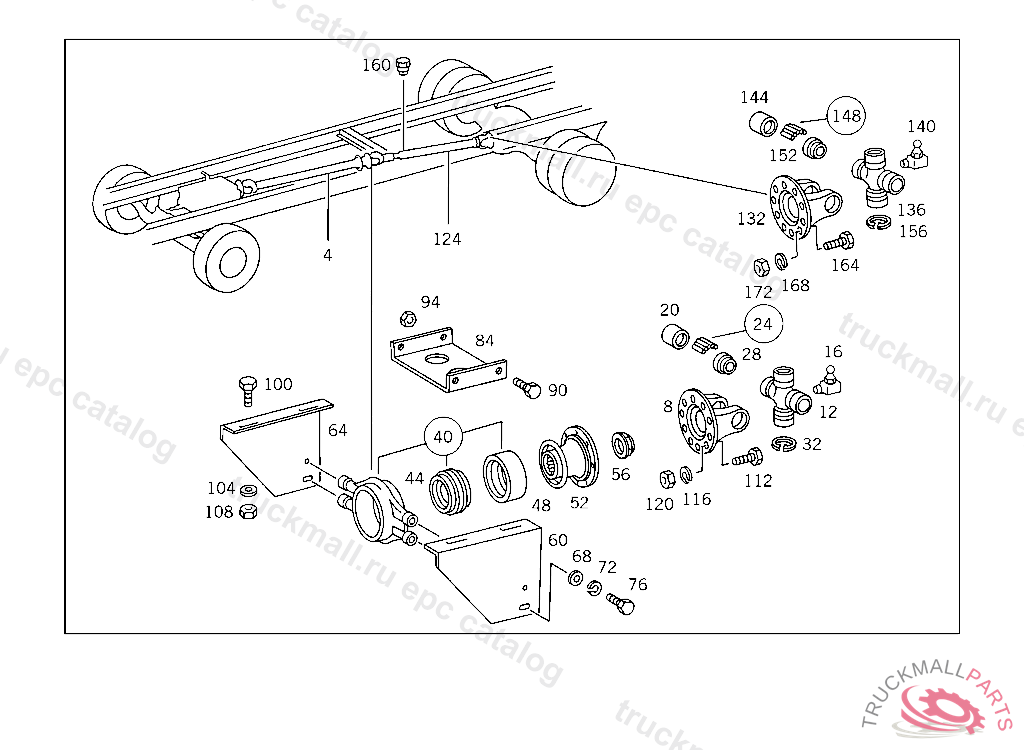 PROTECTIVE CAP FOLLOWER FLANGE, INTERMEDIATE BEARING, BALL BEARING IN RUBBER SEAT