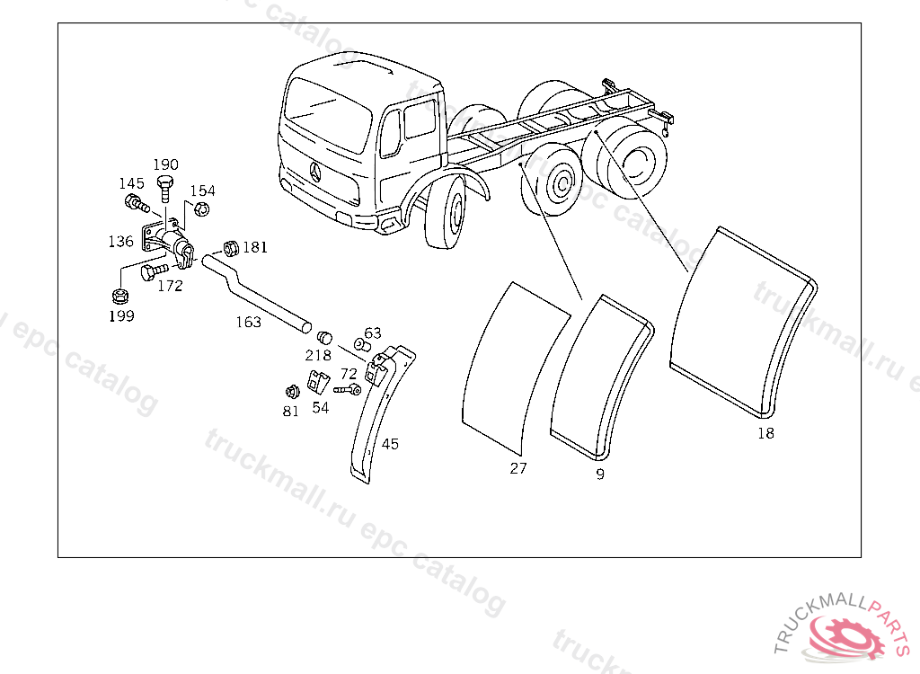 BEARING BRACKET , 393.311 UP TO CHASSIS 4 450302,393.321 UP TO CHASSIS 4 453 074,395.312,322,412,422 UP TO CHASSIS 4 426005
