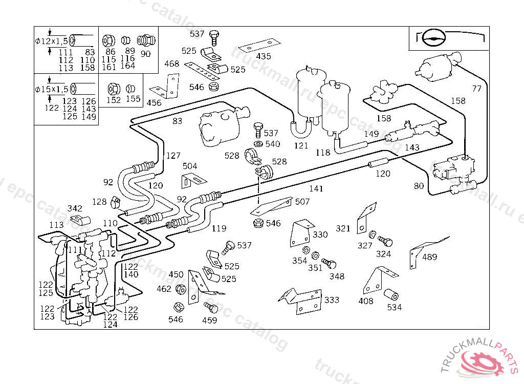 LINE FROM STEERING TO HIGH PRESSURE HOSE, CIRCUIT II,5 760761K 053631