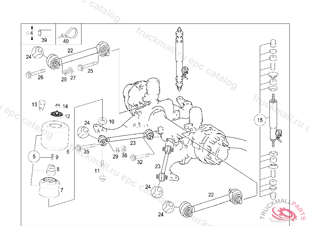 RADIUS ROD (LONGITUDINAL CONTROL ARMS) TOP, ON VEHICLES HAVING NO MERCEDES BENZ BODY FROM IDENT NO. 097836 , 628.000.10.300182, 628.000.14.172141 FOR USE WITH MERCEDES-BENZ BODY FROM IDENT NO. 097976 ALSO INSTALLED ON 300175-300180.