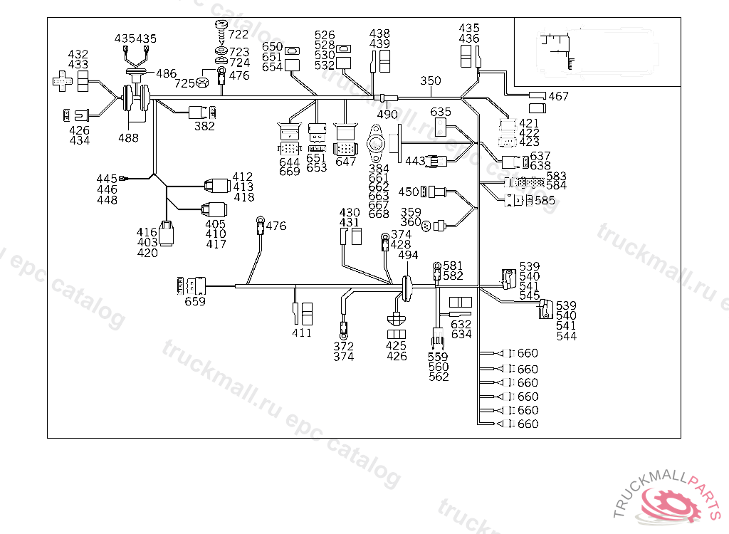 CABLE HARNESS FROM CABLE CONNECTOR TO STARTING MOTOR