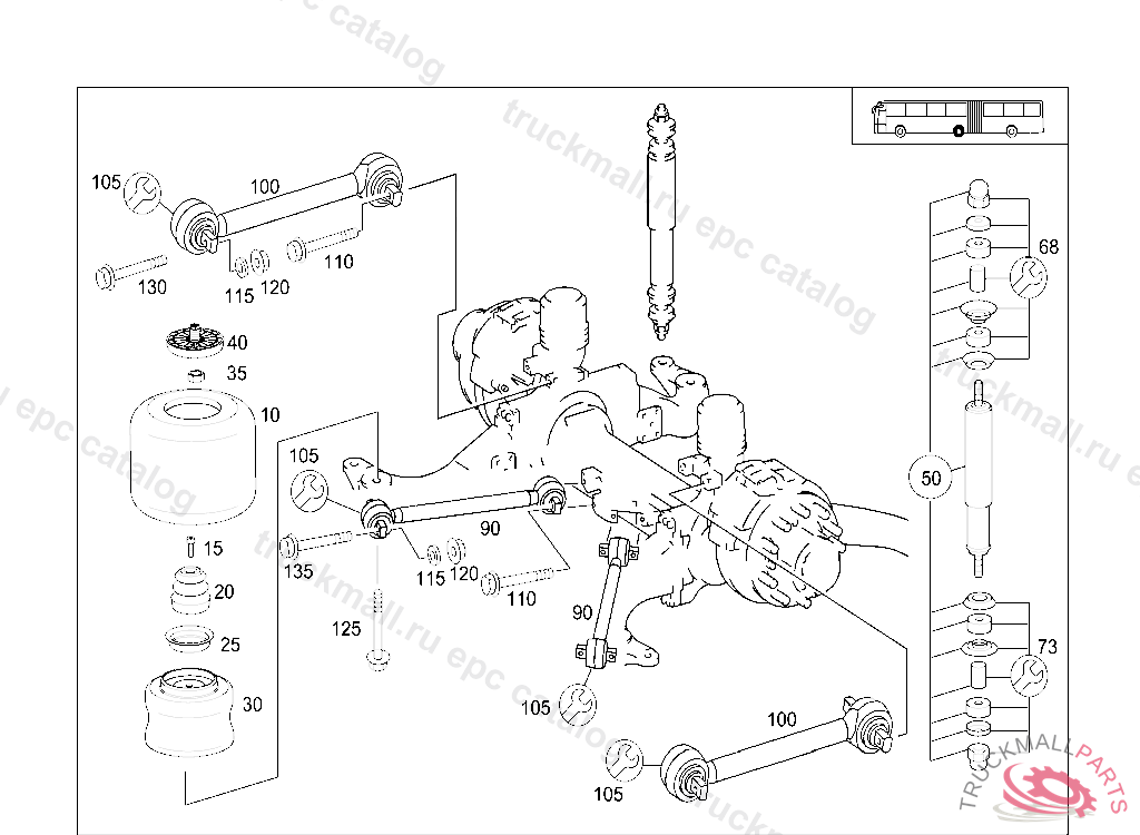 SHOCK ABSORBER (PARTS KIT),CENTRAL AXLE, ON VEHICLES HAVING NO MERCEDES BENZ BODY FROM IDENT NO. 097836 , 628.000.10.300182, 628.000.14.172141 FOR USE WITH MERCEDES-BENZ BODY FROM IDENT NO. 097976 ALSO INSTALLED ON 300175-300180. ONLY REPLACEABLE BY PAIRS