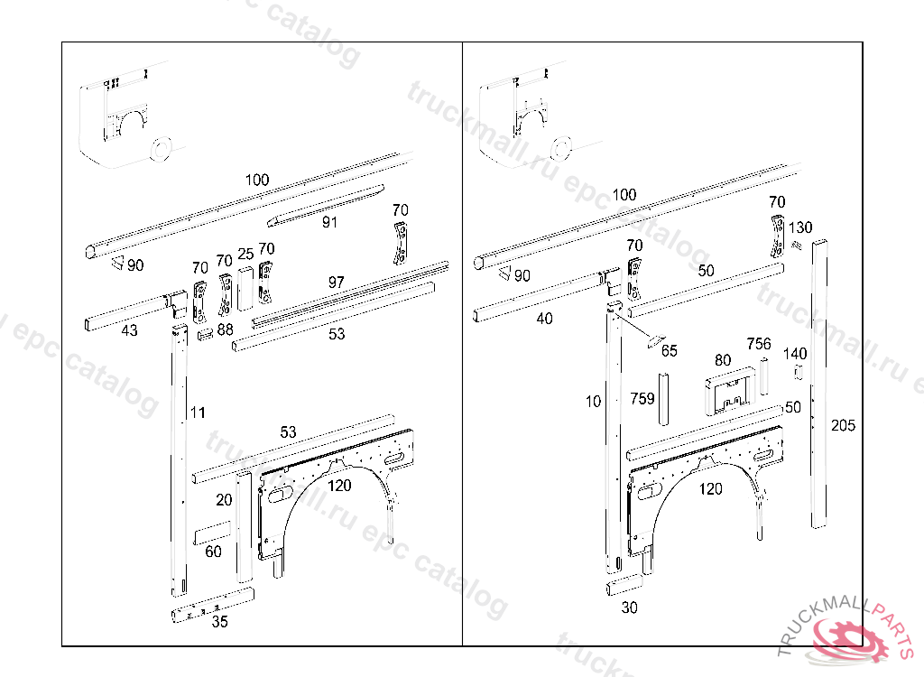 RAIL RIGHT 2328 MM, TO BE ADAPTED DURING ASSEMBLY