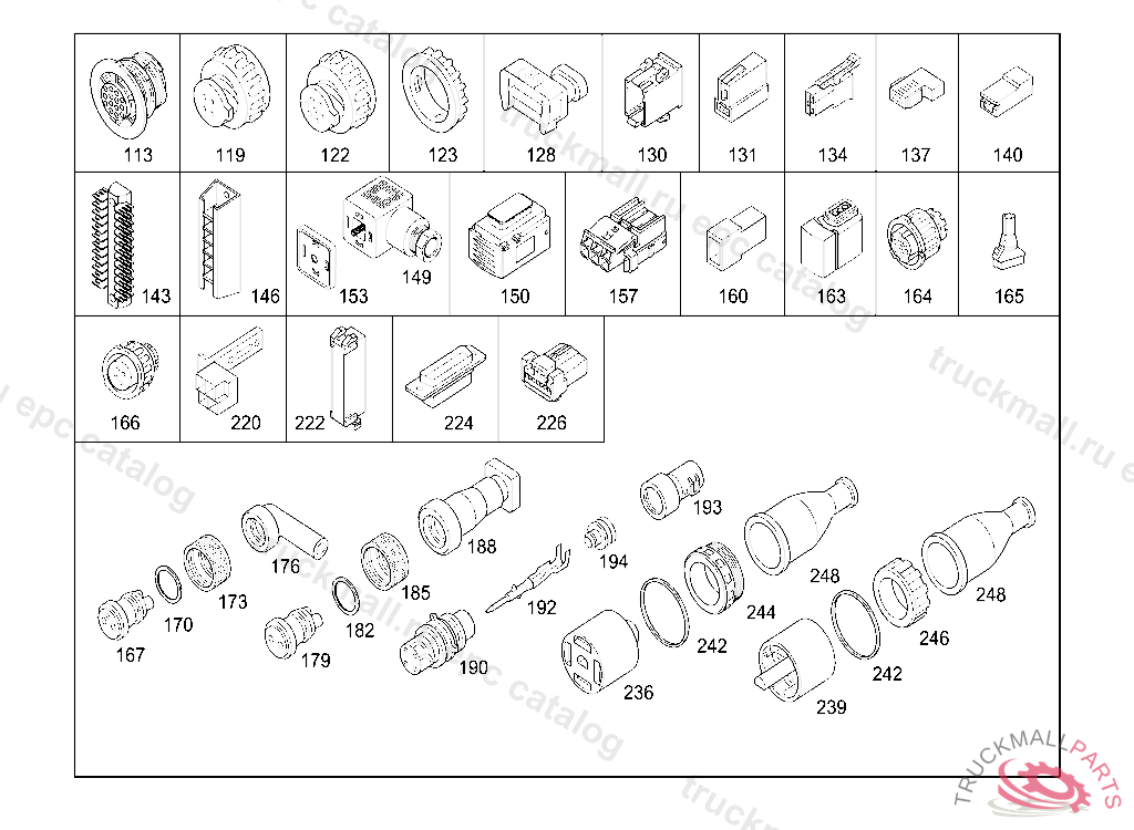 PIN BUSHING HOUSING. PLUG HOUSING FROM CHASSIS/CAB CONNECTION POINT TO TACHOGRAPH