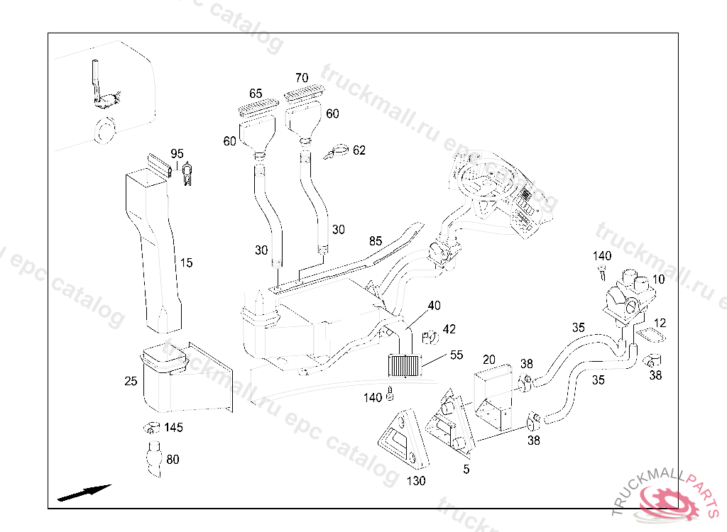 AIR TUBE BETWEEN HEATER AND DRIVER'S SEAT PEDESTAL D90MM