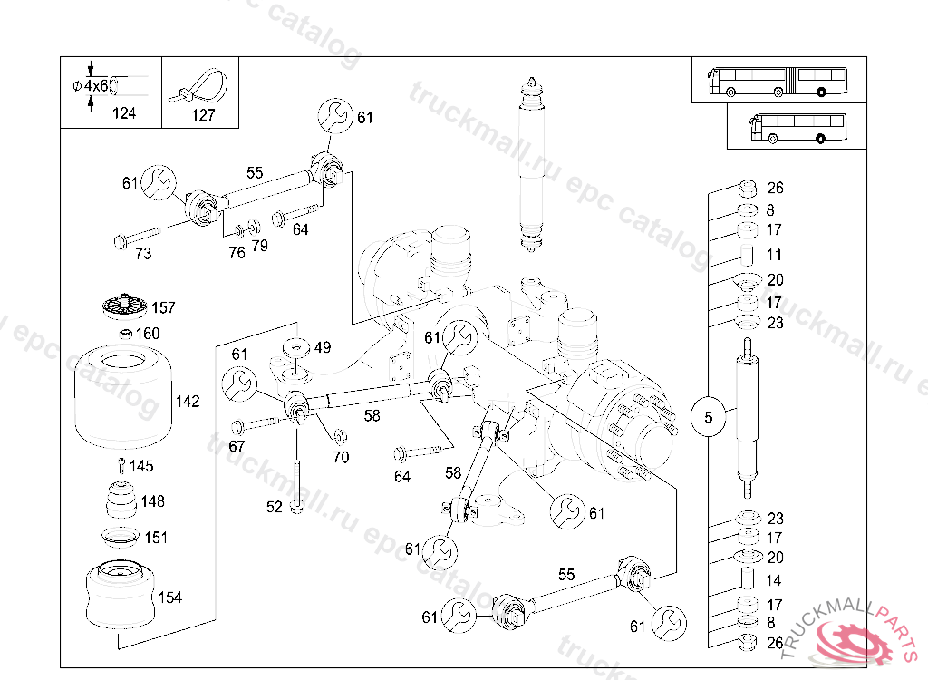RADIUS ROD (LONGITUDINAL CONTROL ARMS) TOP, ON VEHICLES HAVING NO MERCEDES BENZ BODY FROM IDENT NO. 097836 , 628.000.10.300182, 628.000.14.172141 FOR USE WITH MERCEDES-BENZ BODY FROM IDENT NO. 097976 ALSO INSTALLED ON 300175-300180.
