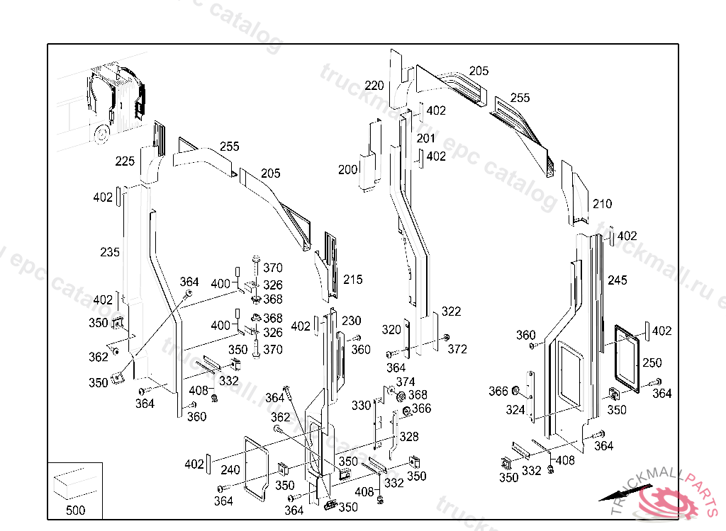 PANELLING REAR CARRIAGE ARTICULATION, RIGHT, NO.7C01I.......I.......I I II
