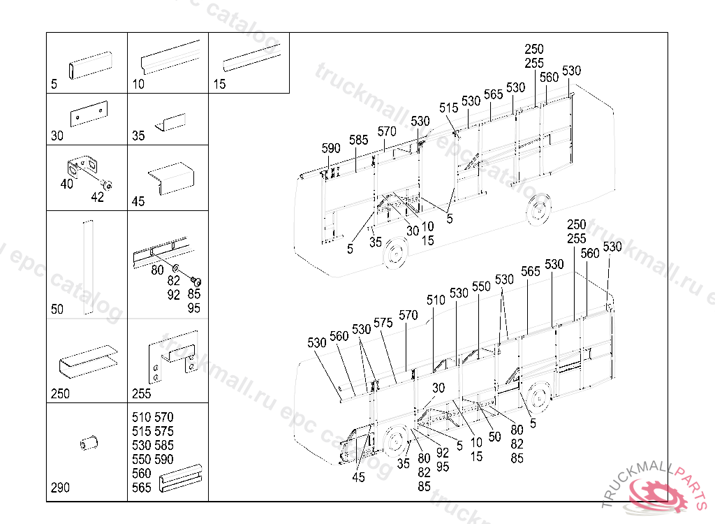 63 SIDE PANELS - 500 SUPPORT AND CONNECTORS FOR FRAME,LEFT AND RIGHT IL. 1