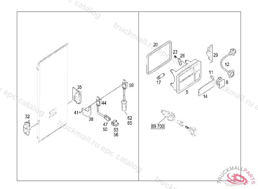HANDLE MECHANICAL LOCKING, WITH CARRIER, WITH SIDE LAMP, FOR LUGGAGE FLAP, Replaced By: A6297501693
