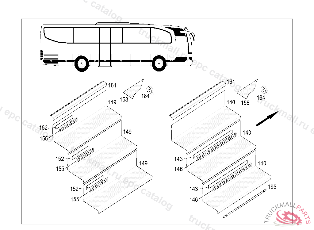 RUBBER MAT CENTER MOLDED STEPS L1000MM