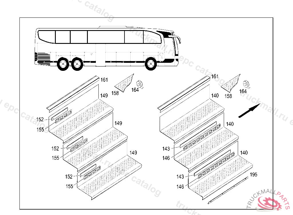 RUBBER MAT CENTER MOLDED STEPS L1000 MM