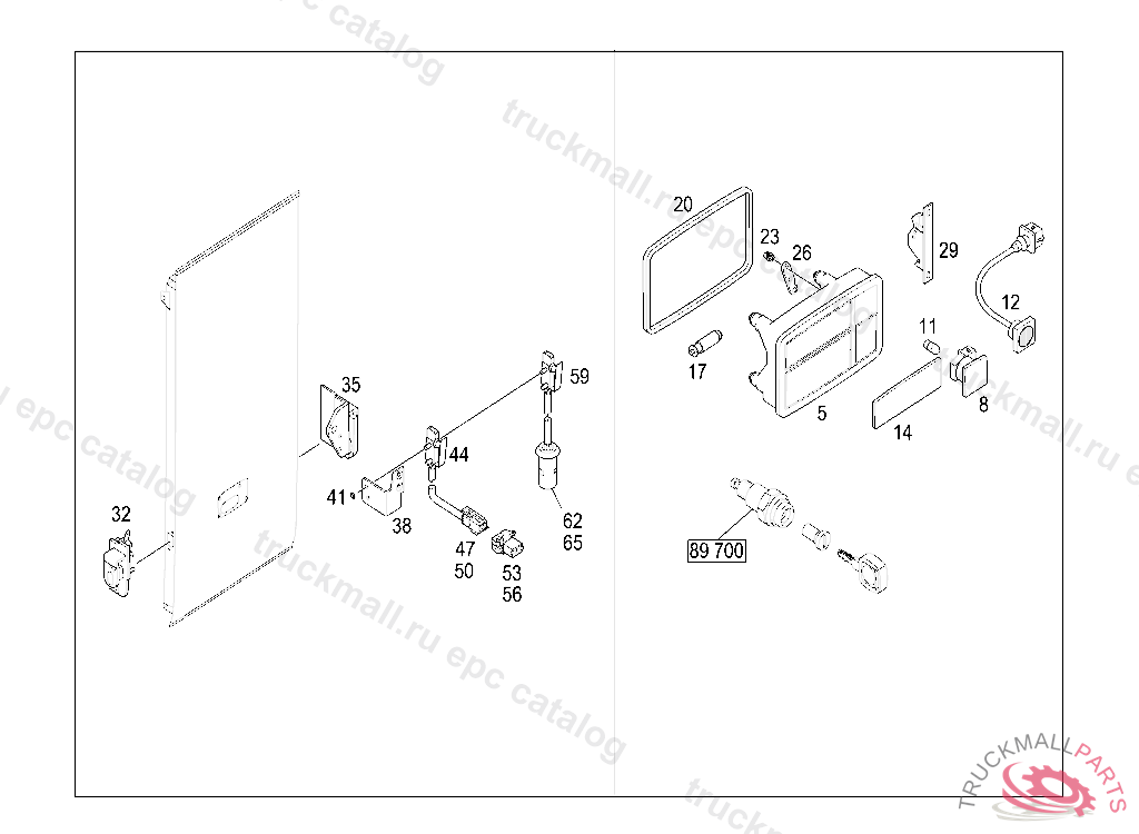 HANDLE MECHANICAL LOCKING, WITH CARRIER, WITH SIDE LAMP, FOR LUGGAGE FLAP, Replaced By: A6297501693