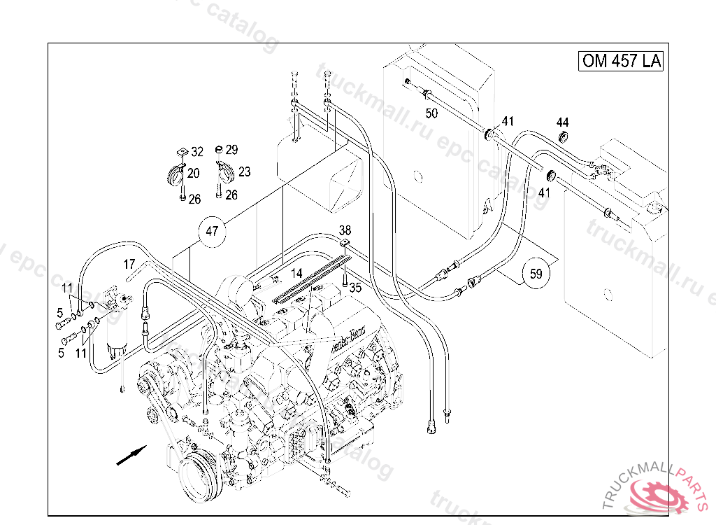 CLAMP DELIVERY AND SUCTION LINES TO ENGINE, FRONT